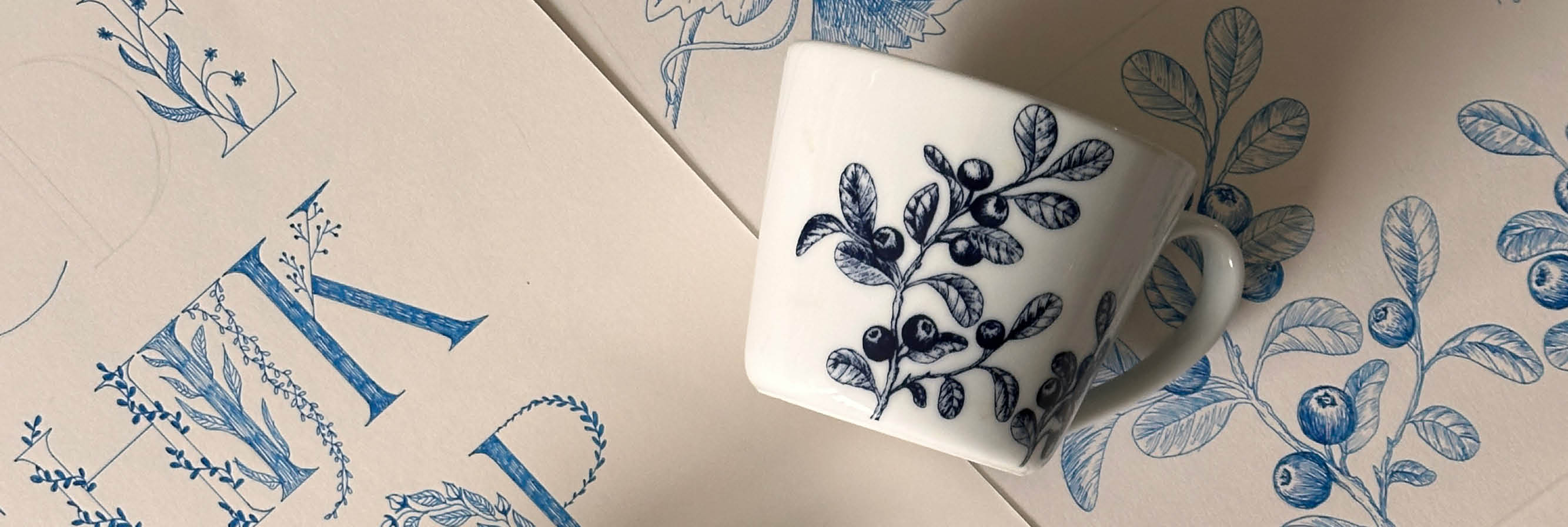 Hvert krus kombinerer typografi og natur i et tidløst uttrykk