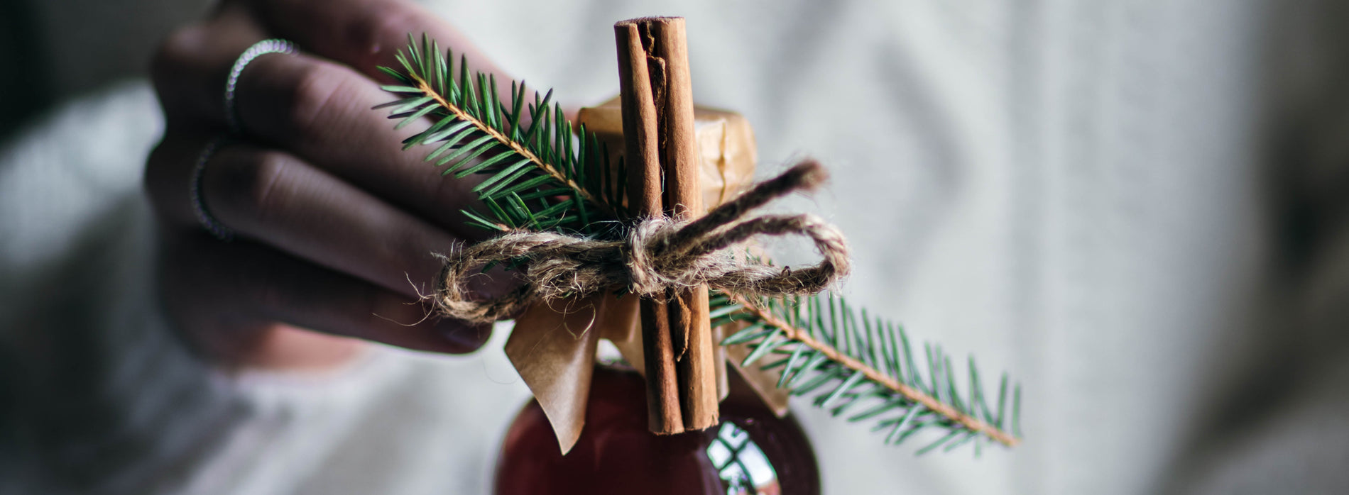 Fyll sirupen på en pen flaske, knyt et bånd rundt halsen og fest en liten merkelapp med navnet på. Kombiner gjerne med julepynt fra Christiania Glasmagasin.